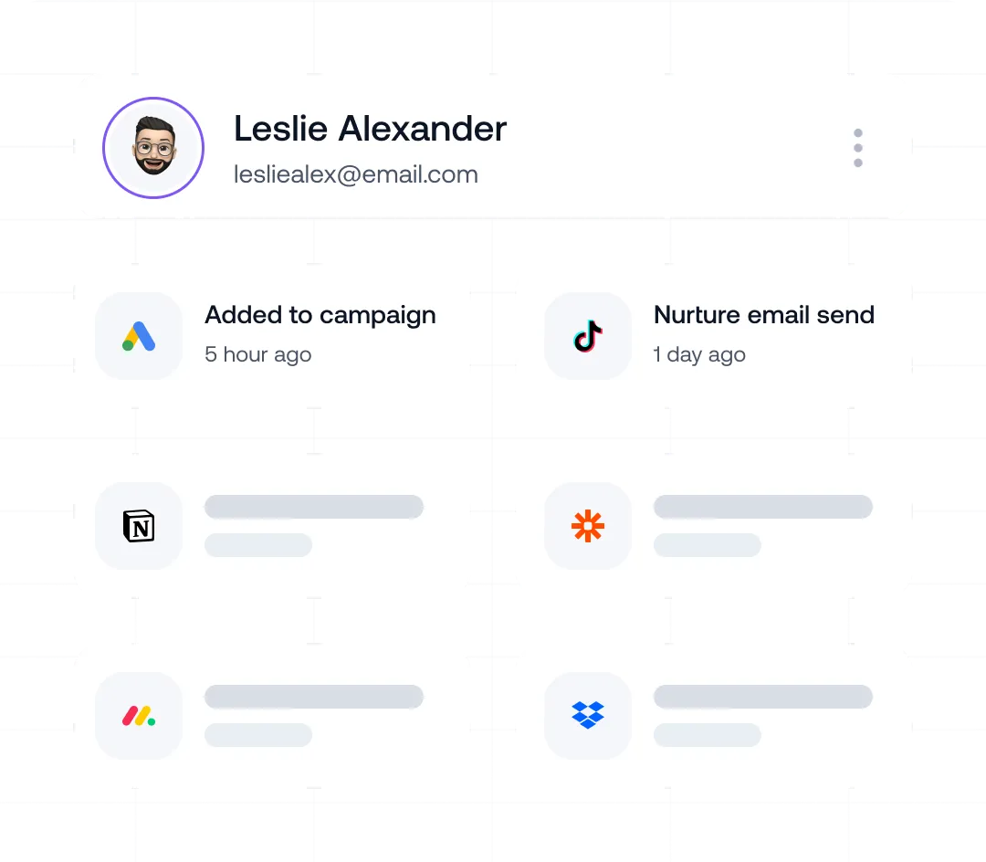 Datavi syncs your data with your CRM, email, advertising tools, and more. No engineering, no manual work, no expensive CDPs.